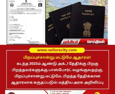 கடந்த 2023ம் ஆண்டு அக்.,1 தேதிக்கு பிறகு பிறந்தவர்களுக்கு பாஸ்போர்ட் வழங்குவதற்கு, பிறப்புச்சான்று மட்டுமே, பிறந்த தேதிக்கான ஆதாரமாக கருதப்படும்…