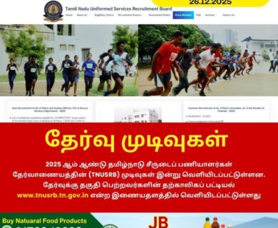 2025 ஆம் ஆண்டு தமிழ்நாடு சீருடைப் பணியாளர்கள் தேர்வாணையத்தின் (TNUSRB) முடிவுகள் இன்று வெளியிடப்பட்டுள்ளன. தேர்வுக்கு தகுதி பெற்றவர்களின் தற்காலிகப்…