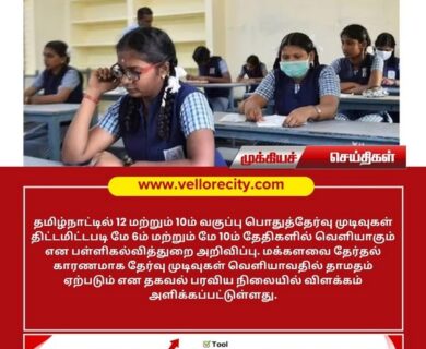 தமிழ்நாட்டில் 12 மற்றும் 10ம் வகுப்பு பொதுத்தேர்வு முடிவுகள் திட்டமிட்டபடி மே 6ம் மற்றும் மே 10ம் தேதிகளில் வெளியாகும்…