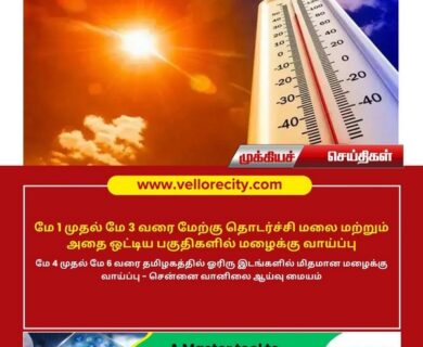 மே 1 முதல் மே 3 வரை மேற்கு தொடர்ச்சி மலை மற்றும் அதை ஒட்டிய பகுதிகளில் மழைக்கு வாய்ப்பு.மே…