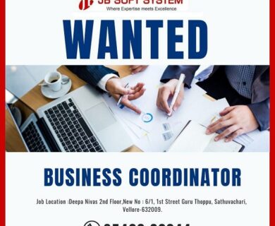 WANTED BUSINESS COORDINATOR Job Location :JB SOFT SYSTEM, Deepa Nivas 2nd Floor, New No: 6/1,…