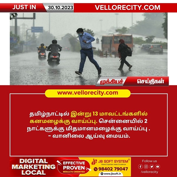 தமிழ்நாட்டில் இன்று 13 மாவட்டங்களில் கனமழைக்கு வாய்ப்பு. சென்னையில் 2 நாட்களுக்கு மிதமானமழைக்கு வாய்ப்பு என வானிலை ஆய்வு மையம் அறிவித்துள்ளது. 725