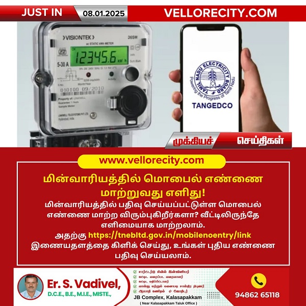 மின்வாரியத்தில் பதிவு செய்யப்பட்டுள்ள மொபைல் எண்ணை மாற்ற விரும்புகிறீர்களா? வீட்டிலிருந்தே எளிமையாக மாற்றலாம். அதற்கு https://tnebltd.gov.in/mobilenoentry/link இணையதளத்தை கிளிக் செய்து, உங்கள் புதிய எண்ணை பதிவு செய்யலாம்.
