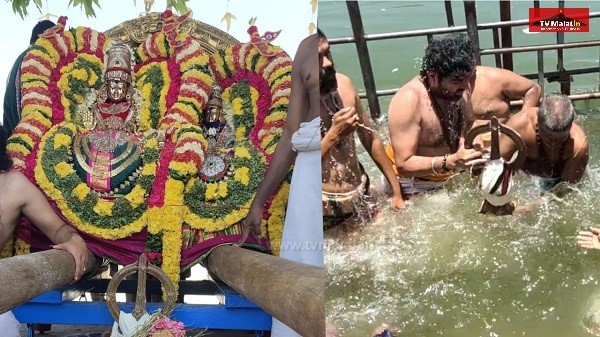 திருவண்ணாமலை அண்ணாமலையார் திருக்கோவிலில் சித்திரை வசந்த உற்சவம் 10-ம் நாள் பெரியநாயக்கர் பராசக்தி அம்மன் அய்யங்குளத்தில் எழுந்தருளி தீர்த்தவாரி நடைபெற்றது.இதில் திரளான பக்தர்கள் கலந்து கொண்டு சாமி தரிசனம் செய்தார்கள்.