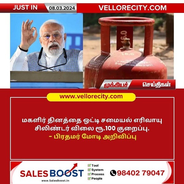 மகளிர் தினத்தை ஒட்டி சமையல் எரிவாயு சிலிண்டர் விலை குறைப்பு!