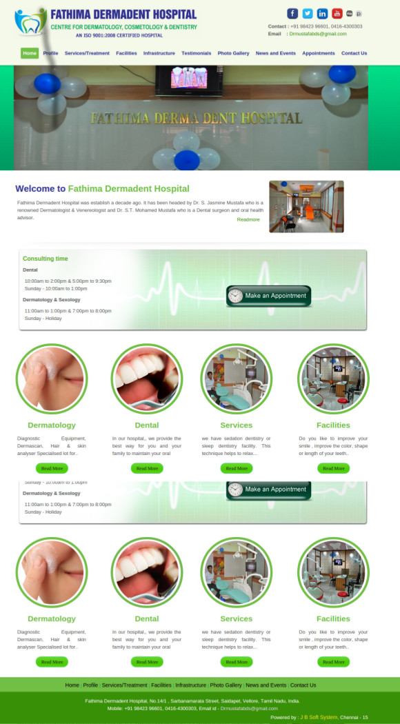 | Fathima Dermadent Hospital, Address :No.14/1 , Sarbanamarata Street, Saidapet,Vellore. Phone : 9842396601 Website: www.fathimadermadenthospital.com |
