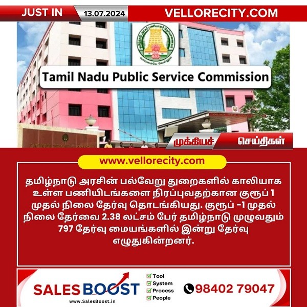தமிழ்நாடு அரசின் பல்வேறு துறைகளில் காலியாக உள்ள பணியிடங்களை நிரப்புவதற்கான குரூப் 1 முதல் நிலை தேர்வு தொடங்கியது. குரூப் -1 முதல் நிலை தேர்வை 2.38 லட்சம் பேர் தமிழ்நாடு முழுவதும் 797 தேர்வு மையங்களில் இன்று தேர்வு எழுதுகின்றனர்.