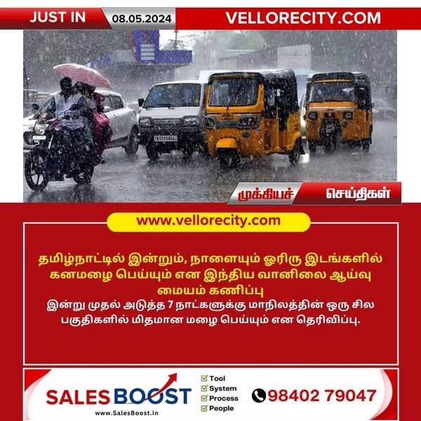 தமிழ்நாட்டில் இன்றும், நாளையும் ஓரிரு இடங்களில் கனமழை!
