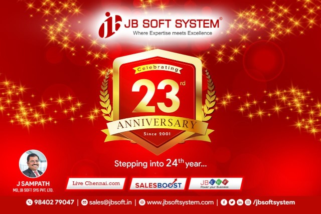 As we commemorate this significant milestone, we renew our commitment to Mr. J Sampath`s vision of excellence and customer satisfaction. JB Soft System will continue to innovate and adapt, striving to meet the ever-evolving needs of our clients and the industry.