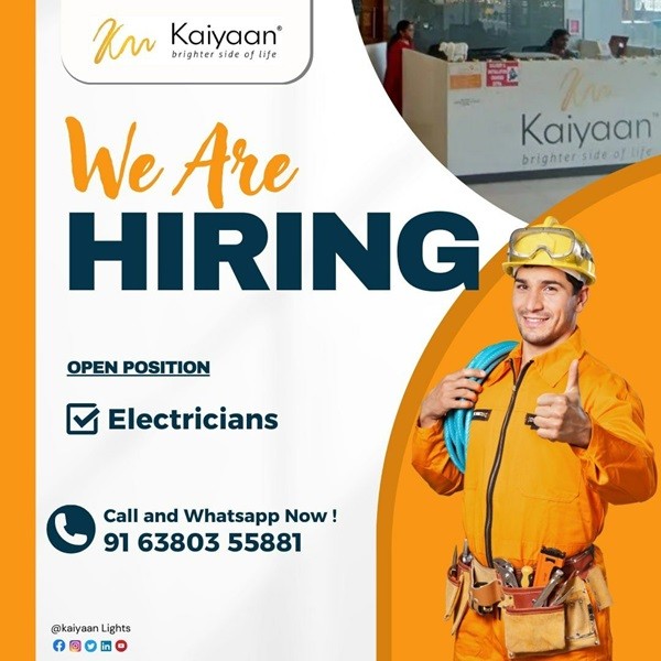 Kaiyaan is excited to announce that we are hiring for Electricians!
