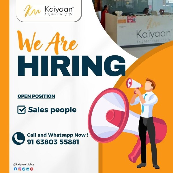 Open Position: • Sales people Contact : +91 63803 55881. Apply now and be part of our growing team at Kaiyan! 903
