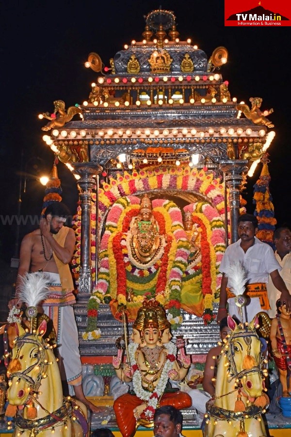 திருவண்ணாமலை அண்ணாமலையார் திருக்கோயிலில் திருக்கார்த்திகை தீபத் திருவிழா இரண்டாம் நாளான நேற்று (05.12.2024) இரவு வெள்ளி இந்திர வாகனத்தில் பஞ்ச மூர்த்திகள் மாட வீதி வலம் வந்து பக்தர்களுக்கு அருள்பாலித்தார்.
