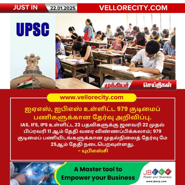 IAS, IFS, IPS உள்ளிட்ட 23 பதவிகளுக்கு ஜனவரி 22 முதல் பிப்ரவரி 11 ஆம் தேதி வரை விண்ணப்பிக்கலாம்; 979 குடிமைப் பணியிடங்களுக்கான முதல்நிலைத் தேர்வு மே 25ஆம் தேதி நடைபெறவுள்ளது.