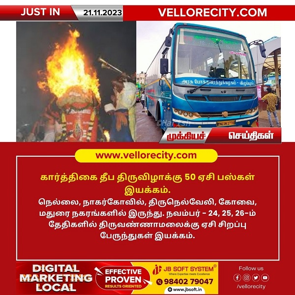 திருவண்ணாமயில் போக்குவரத்து நெரிசலை தவிர்க்க 9 தற்காலிக பேருந்து நிலையங்கள் மற்றும் 40 கட்டணமில்லா சிற்றுந்துகள் இயக்கம்!
