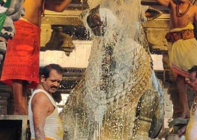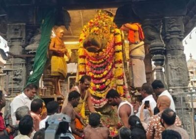 திருவண்ணாமலையில் அருணாச்சலேஸ்வரர் திருக்கோவிலில் நேற்று (16-03-2026) பங்குனி மாத அமாவாசை பிரதோஷத்தை முன்னிட்டு நந்தி பகவானுக்கு சிறப்பு அபிஷேக ஆராதனை நடைபெற்றது. இதில் திரளான பக்தர்கள் கலந்து கொண்டு அரோகரா கோஷத்துடன் தரிசனம் செய்தார்கள்.