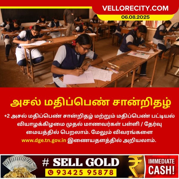 +2 அசல் மதிப்பெண் சான்றிதழ் மற்றும் மதிப்பெண் பட்டியல் வியாழக்கிழமை முதல் மாணவர்கள் பள்ளி / தேர்வு மையத்தில் பெறலாம். மேலும் விவரங்களை www.dge.tn.gov.in இணையதளத்தில் அறியலாம். 263