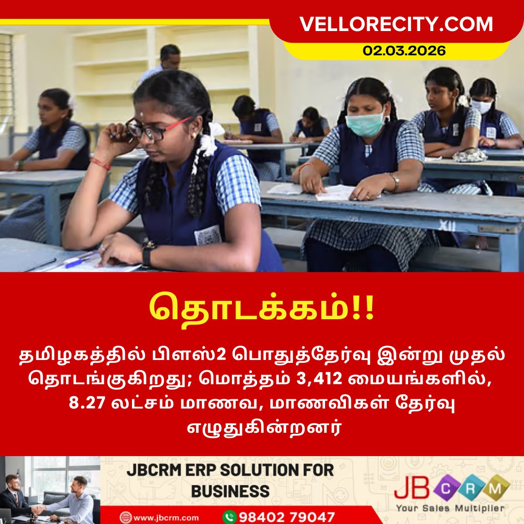 தமிழகத்தில் பிளஸ்2 பொதுத்தேர்வு இன்று முதல் தொடங்குகிறது மொத்தம் 3,412 மையங்களில், 8.27 லட்சம் மாணவ, மாணவிகள் தேர்வு எழுதுகின்றனர்.