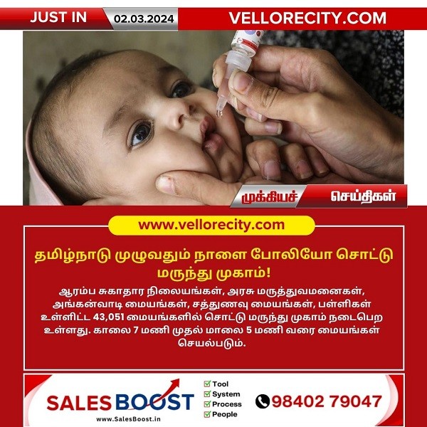 தமிழ்நாடு முழுவதும் நாளை போலியோ சொட்டு மருந்து முகாம்!