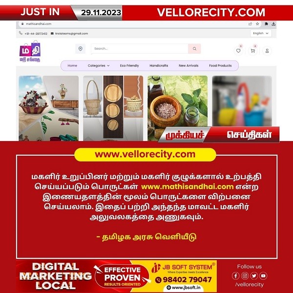 மகளிர் உறுப்பினர் மற்றும் மகளிர் குழுக்களால் உற்பத்தி செய்யப்படும் பொருட்கள் www.mathisandhai.com என்ற இணையதளத்தின் மூலம் பொருட்களை விற்பனை செய்யலாம். இதைப் பற்றி அந்தந்த மாவட்ட மகளிர் அலுவலகத்தை அணுகவும் என தமிழக அரசு அறிவித்துள்ளது.