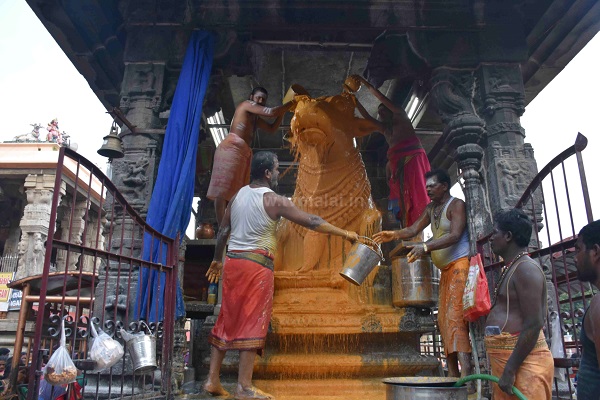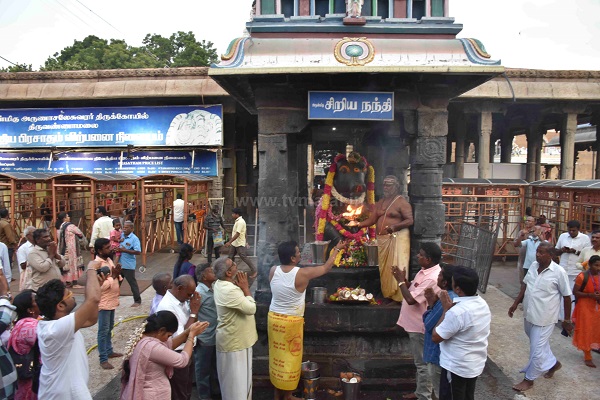 திருவண்ணாமலையில் அருணாச்சலேஸ்வரர் திருக்கோவிலில் இன்று (12.10.2023) புரட்டாசி மாதம் இரண்டாவது பிரதோஷத்தை முன்னிட்டு நந்தி பகவானுக்கு சிறப்பு அபிஷேக ஆராதனை நடைபெற்றது. இதில் திரளான பக்தர்கள் கலந்து கொண்டு சாமி தரிசனம் செய்தார்கள்.