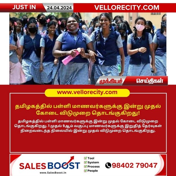 தமிழகத்தில் பள்ளி மாணவர்களுக்கு இன்று முதல் கோடை விடுமுறை தொடங்குகிறது!