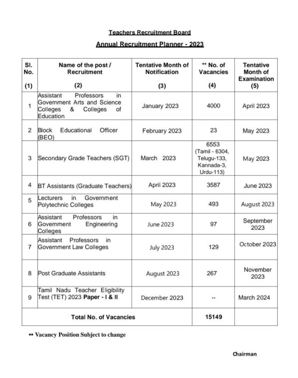 Tamil Nadu Teachers Recruitment Board (TRB) has released the timetable for the Teachers Eligibility Tests in the year 2023!