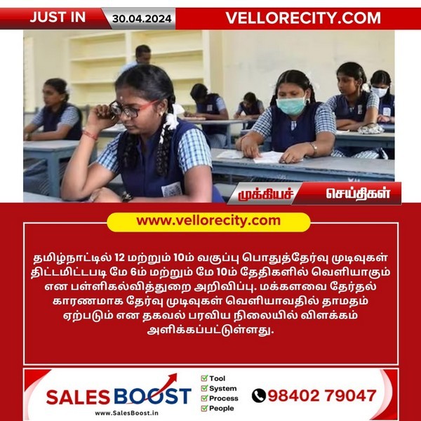தமிழ்நாட்டில் 12 மற்றும் 10ம் வகுப்பு பொதுத்தேர்வு முடிவுகள் திட்டமிட்டபடி மே 6ம் மற்றும் மே 10ம் தேதிகளில் வெளியாகும் என பள்ளி கல்வித்துறை அறிவிப்பு. மக்களவை தேர்தல் காரணமாக தேர்வு முடிவுகள் வெளியாவதில் தாமதம் ஏற்படும் என தகவல் பரவிய நிலையில் விளக்கம் அளிக்கப்பட்டுள்ளது.