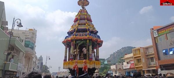 திருவண்ணாமலை அருள்மிகு அண்ணாமலையார் திருக்கோவிலில் நடைபெற்று வரும் திருக்கார்த்திகை தீபத் திருவிழாவின் ஏழாம் நாள் விழாவில், பஞ்சமூர்த்திகளின் மகா தேரோட்டம் சிறப்பாக நடைபெற உள்ளது. பக்தர்கள் திரளாக கலந்து கொண்டு தேரை இழுத்து சாமி தரிசனம் செய்ய உள்ளனர்.