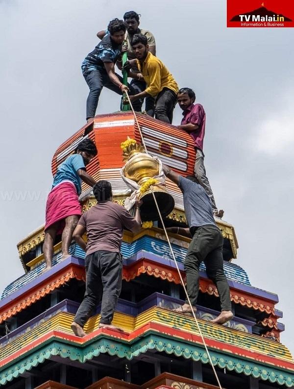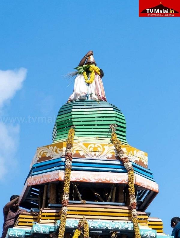 திருவண்ணாமலை அருள்மிகு அண்ணாமலையார் திருக்கோயில் தீபத் திருவிழா 7-ம் நாள் தேர்த் திருவிழாவிற்காக தேரில் கலசம் பொருத்தும் பணி (21-11-2023) நேற்று நடைபெற்றது.