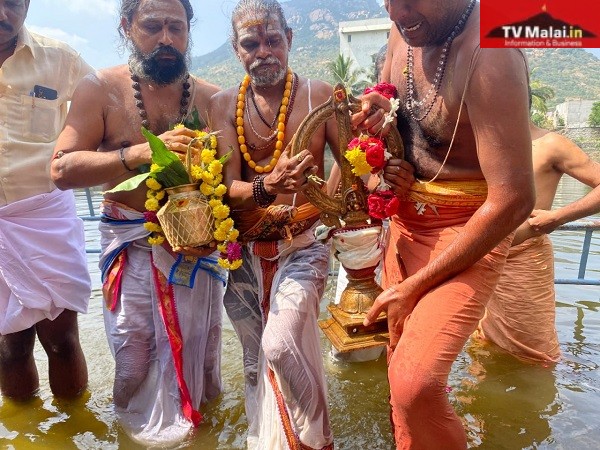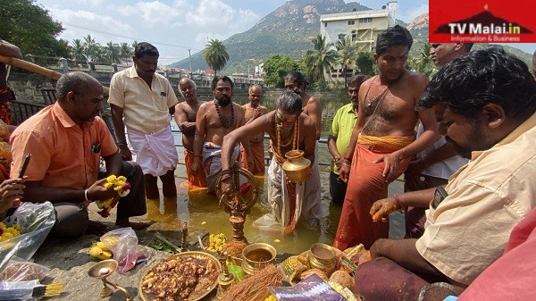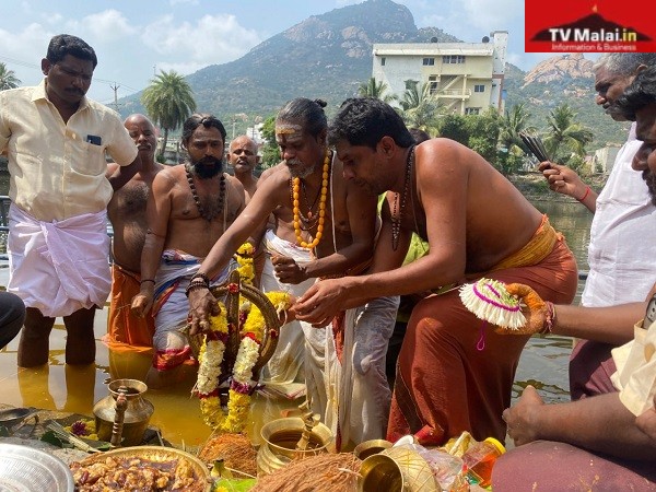 திருவண்ணாமலை அண்ணாமலையார் திருக்கோயிலில் இன்று (25.01.2024) தைப்பூசம் முன்னிட்டு ஈசான்ய குளத்தில் தீர்த்தவாரி நடைபெற்றது. இதில் திரளான பக்தர்கள் கலந்து கொண்டு சாமி தரிசனம் செய்தனர்.