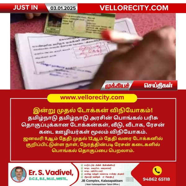 தமிழ்நாடு தமிழ்நாடு அரசின் பொங்கல் பரிசு தொகுப்புக்கான டோக்கன்கள், வீடு, வீடாக, ரேசன் கடை ஊழியர்கள் மூலம் விநியோகம்.