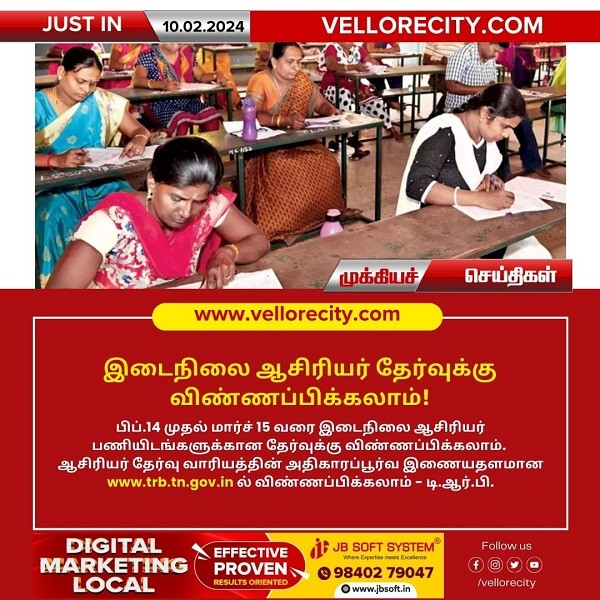 பிப்.14 முதல் இடைநிலை ஆசிரியர் தேர்வுக்கு விண்ணப்பிக்கலாம்!